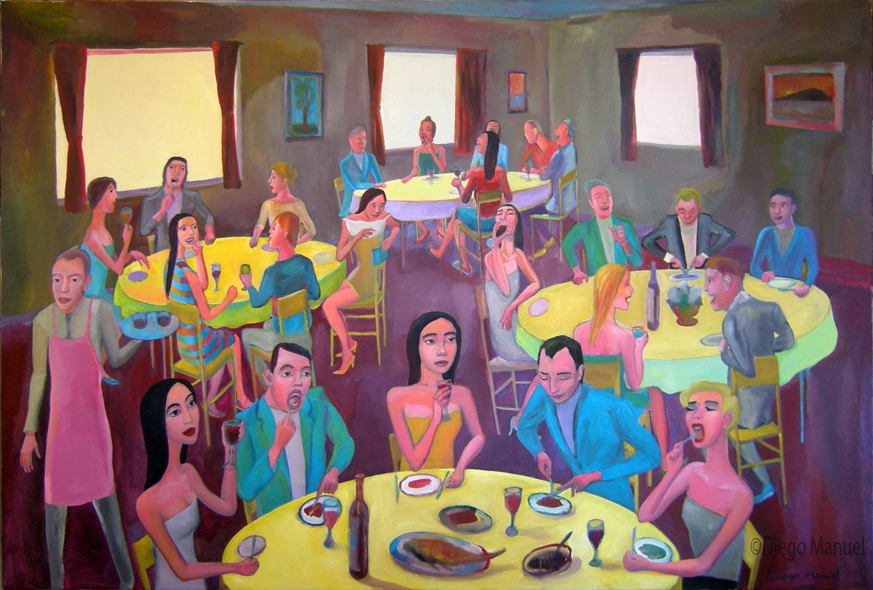 Comida con amigos (b), 140 x 95 cm, acrylic on canvas, year 2011